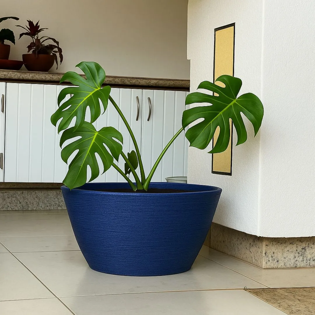 O formato tipo bacia é perfeito para o cultivo de plantas ornamentais, suculentas, flores abertas, mini jardins e espécies de porte médio, permitindo composições decorativas versáteis em áreas internas e externas.